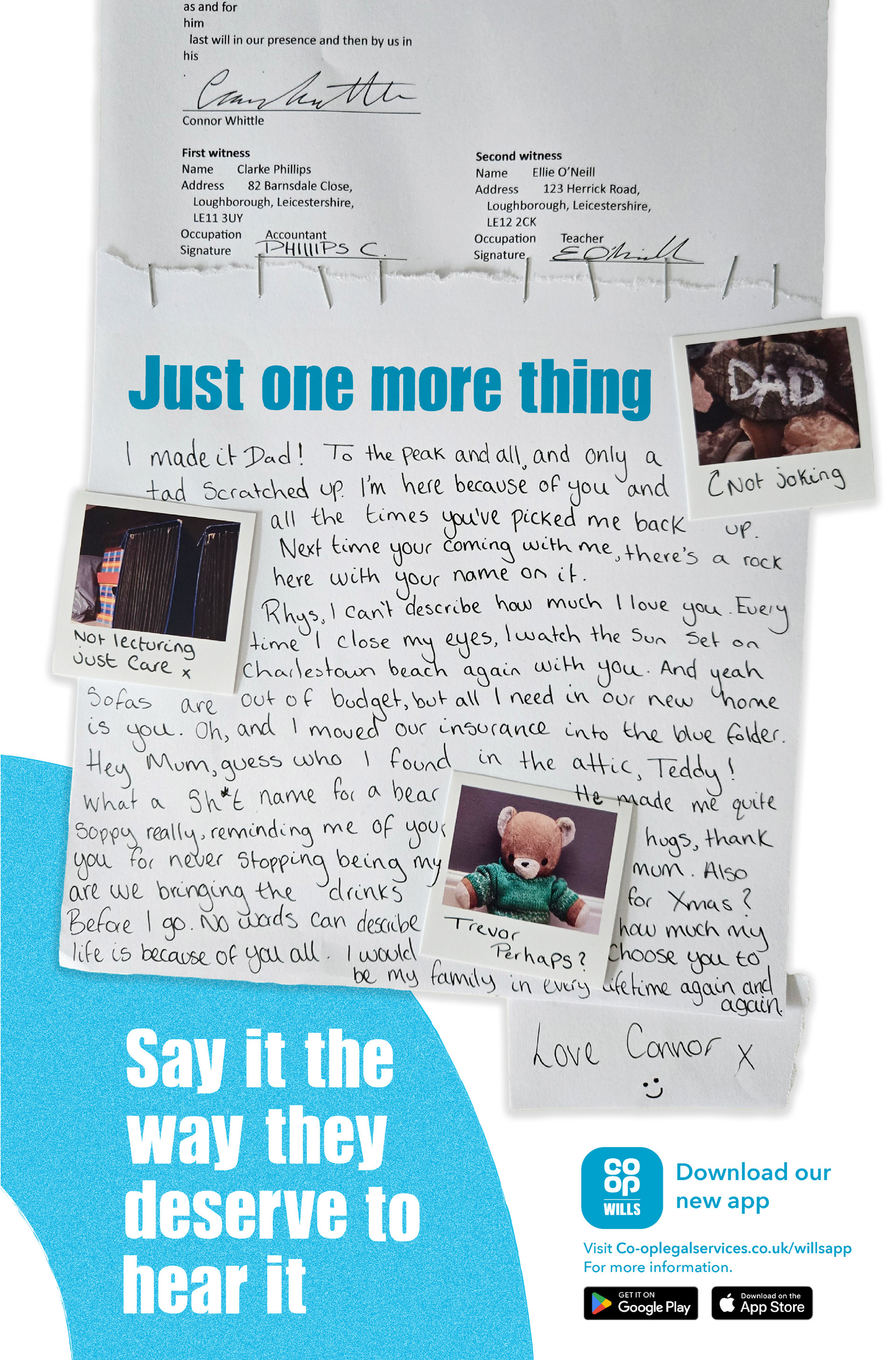 Embracing life's unpredictability, Co-op's new hassle-free digital service and emotive campaign aims to increase uptake in will creation, helping young adults say to their loved ones in the moment what matters most, securing their legacies.