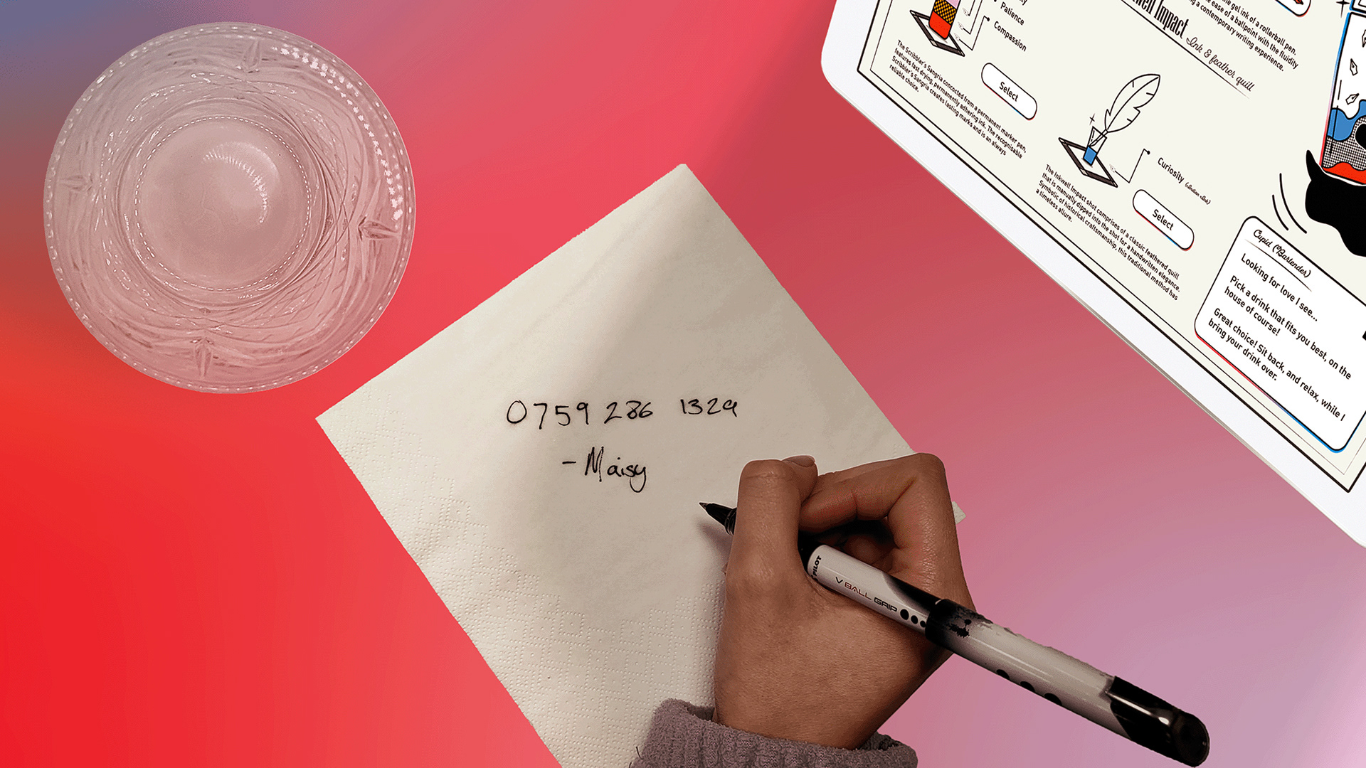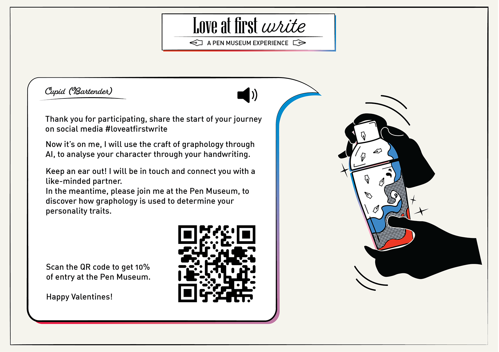 In true rom-com style, participants with the pen write their number on a napkin and let AI graphology technology uncover more of their traits written between the lines.